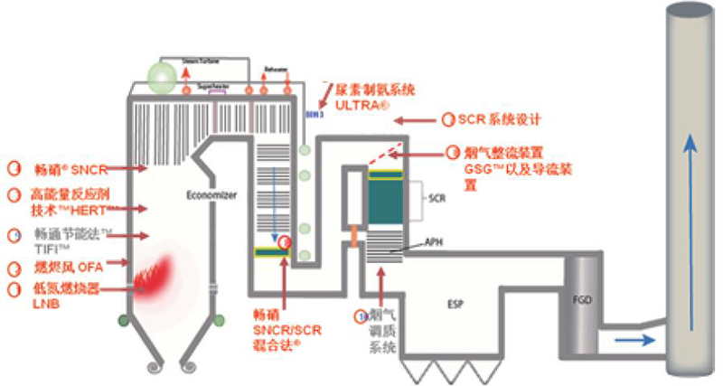 為了達(dá)到排放要求,有時(shí)會采用爐內(nèi)脫硝和爐外脫硝的組合方式。